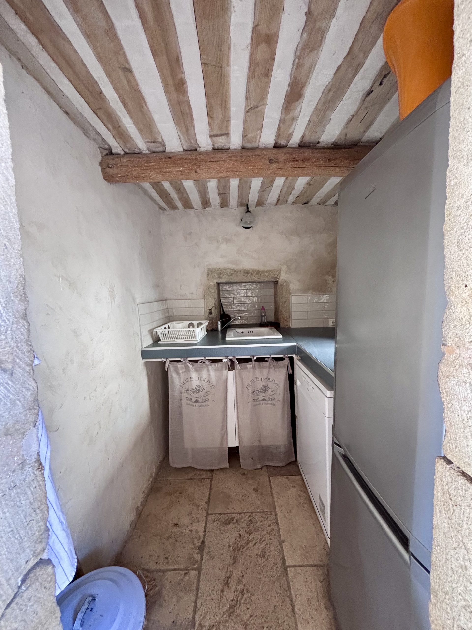 La cuisine d’été sous l’auvent est équipée d’un lave-vaisselle, d’un micro-onde et d’un frigo/congélateur et offre un évier et des rangements.